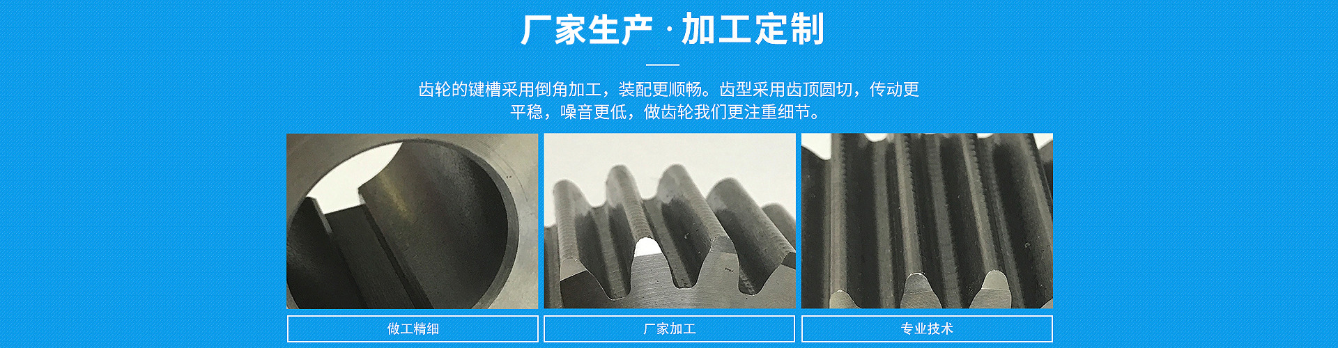 任丘市金發(fā)機(jī)械配件制造有限公司位于河北省滄州市任丘市議論堡鄉(xiāng)東莊店村。生產(chǎn)的主要產(chǎn)品有:齒輪、齒輪軸、齒條、非標(biāo)鏈輪、鏈輪、傘齒輪、同步帶輪等。            誠(chéng)信是金。"人無(wú)信不立,商無(wú)信不遠(yuǎn)",我們站在發(fā)展的角度,堅(jiān)持走誠(chéng)信之路,更把這種經(jīng)營(yíng)理念貫穿于每一道生產(chǎn)工序中。我們本著"以質(zhì)量拓市場(chǎng),以信譽(yù)贏(yíng)客戶(hù)"的宗旨,不斷增強(qiáng)自身實(shí)力,完善內(nèi)部機(jī)制;以更優(yōu)良的技術(shù),更優(yōu)良的服務(wù)奉獻(xiàn)給廣大用戶(hù)。  竭誠(chéng)歡迎廣大客戶(hù)前來(lái)參觀(guān)指導(dǎo)、協(xié)商洽談!
